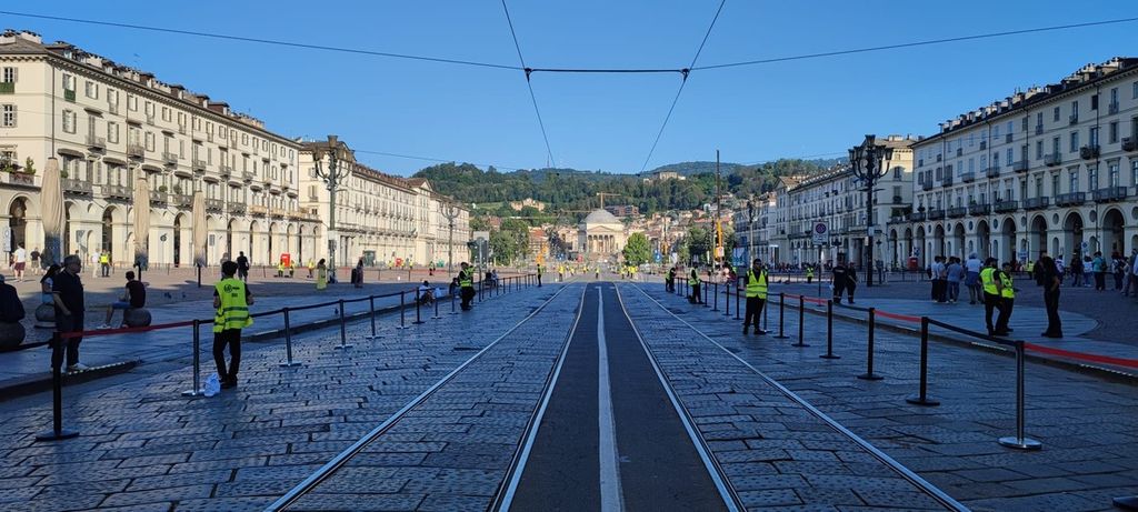 L'ingresso sarà permesso 'solo' a 61 mila persone, contate con lo smartphone dagli steward in ingresso e in uscita. Il centro è blindato, l'ingresso vietato non solo alle auto, ovviamente, ma anche a biciclette e monopattini. In città presta particolare attenzione ad eventi di questa portata a partire dalla tragedia di Piazza San Carlo del 2017, via quindi i dehors e divieto di vendita e consumo di bevande in vetro o lattina.