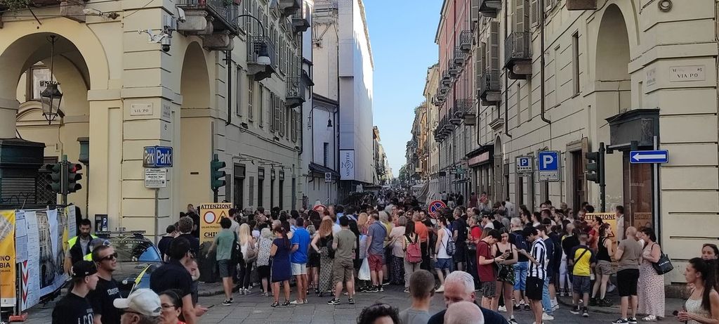 I varchi nella zona di Piazza Vittorio Veneto e di via Po, blindate per la serata, avrebbero dovuto aprire alle 18. Intanto, anche se mancano più di tre ore prima del via dei fuochi, i primi spettatori iniziano ad arrivare e mettersi in fila nonostante l'afa estiva. Qualcuno si lamenta, in attesa sotto al sole, ma gli addetti all'ingresso non possono fare eccezioni.