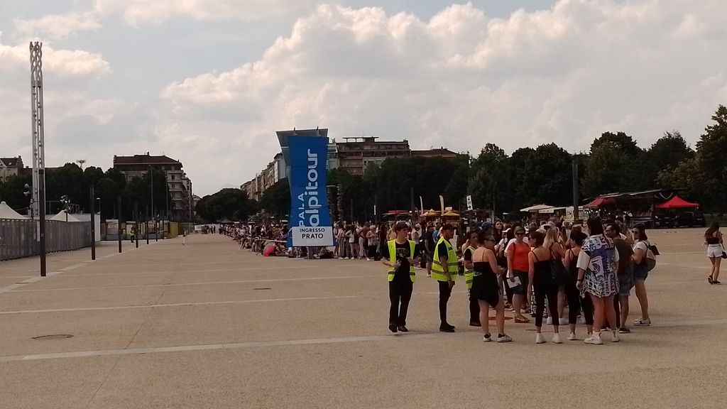 Mancano ancora diverse ore all'inizio della musica, ma le persone in coda per Marco Mengoni intorno allo stadio Grande Torino sono già tantissime. Nonostante il caldo, il sole, la sete e la ressa.