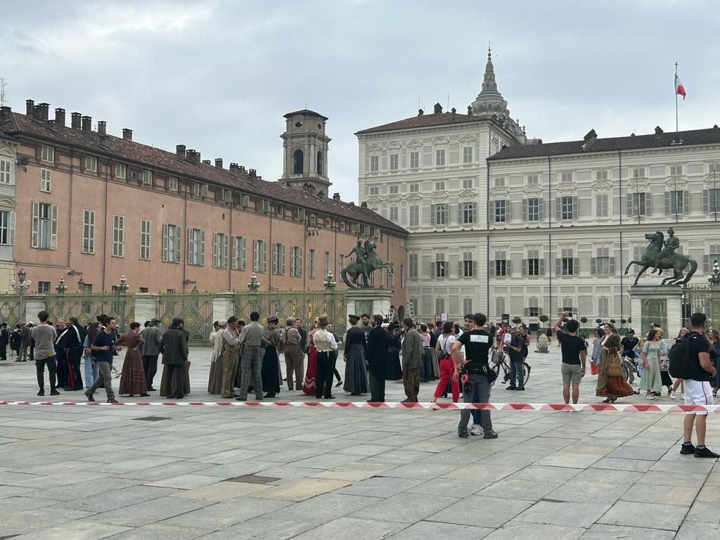 Le riprese per la seconda stagione della serie Netflix Lidia Poet oggi si girano in piazza Castello, tra Palazzo Madama e Palazzo Reale.