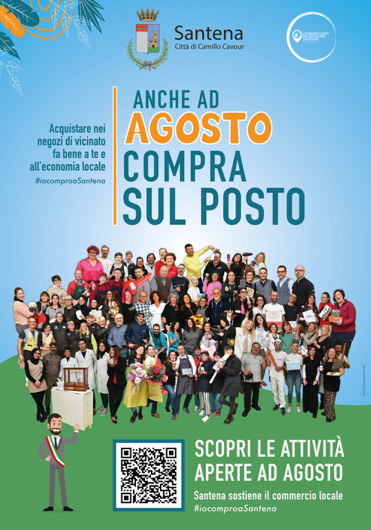 “Anche ad agosto compra sul posto” è la nuova campagna della città di Santena per sostenere il commercio locale.