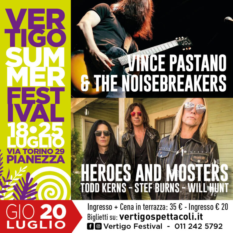 Amanti della musica, preparatevi ad un’esplosione di energia e talento che invaderà il Vertigo Club il 20 luglio! Abbiamo il piacere di presentarvi un concerto straordinario, un doppio evento che vi farà vibrare fino all’anima: Vince Pastano and Heroes and Monsters. È un’opportunità da non perdere!