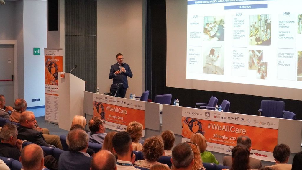 Oltre 240 professionisti specializzati di circa 60 aziende italiane hanno partecipato oggi, ad Orbassano, presso l'Auditorium CEA del CRF di Stellantis, al convegno nazionale WeAllCare, focalizzato sulla salute e la sicurezza nei luoghi di lavoro.