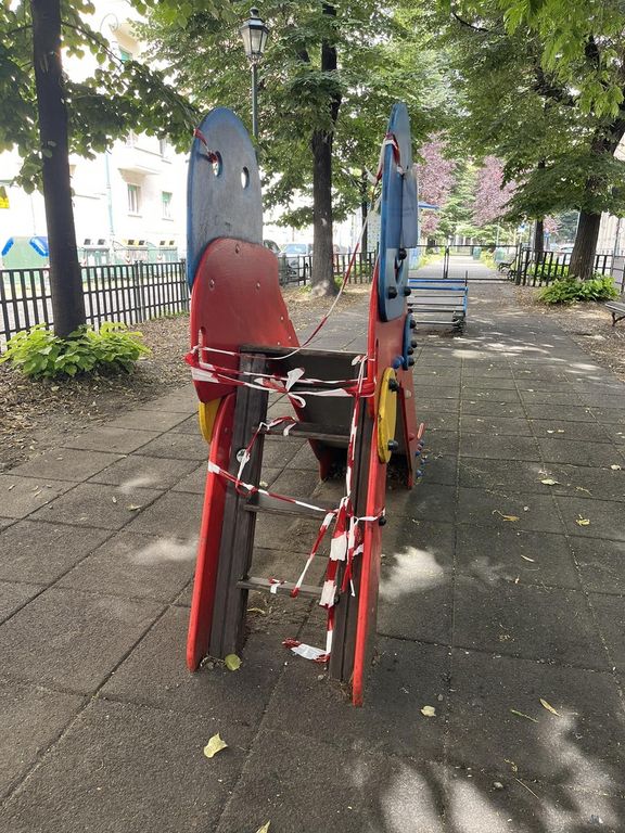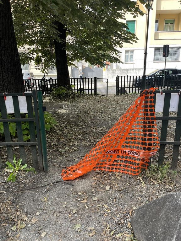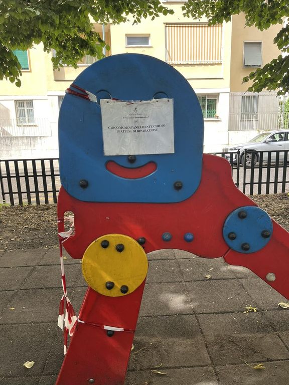 Scivolo ed ingressi chiusi con nastro da cantiere: degrado nell'area giochi di via Bertolotti