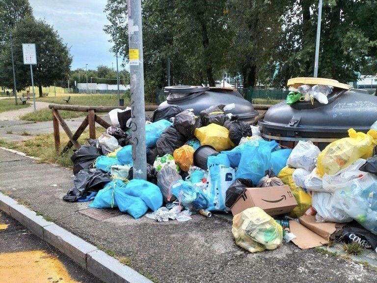 Cumuli di spazzatura lasciati a pochi passi da un giardino pubblico