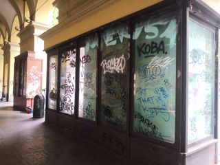 Tra graffiti, vandali e vetrine vuote, il degrado dei portici di corso Vittorio [FOTO]