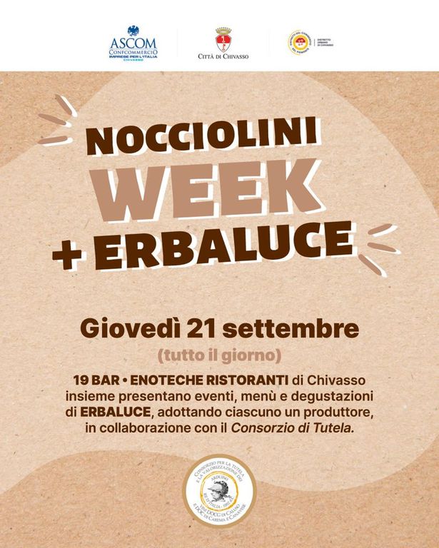 Il profumo d’Erbaluce, abbinato a quello altrettanto inconfondibile dei nocciolini di Chivasso. E’ un binomio all’insegna del gusto quello che caratterizzerà la giornata di giovedì 21 settembre, in piena Nocciolini Weekend.