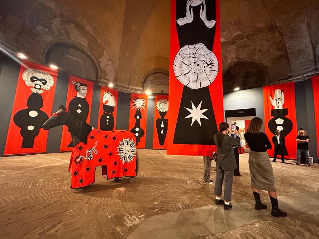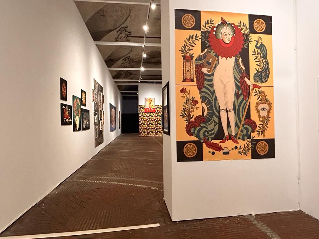 Oltre agli stendardi che ricreano questo luogo mistico e sacro, la mostra prosegue nella manica della Cavallerizza con un'antologia delle opere di Elisa Seitzinger.