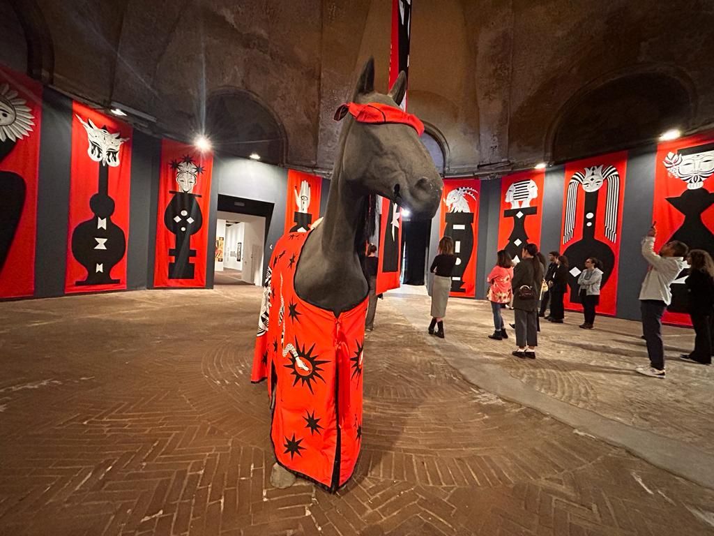 Obiettivo dell'illustratrice è anche quello di unire l'arte illustrativo con l'arte contemporanea e lo fa attraverso un'installazione video. "Per la prima volta ho creato una videoinstallazione perché mi interessava fare un rito, un gesto simbolico. Ho portato al galoppatoio, penso per l'ultima volta a livello storico un cavallo vero, l'ho vestito con una gualdrappa disegnata da me e l'ho fatto passeggiare e galoppare tra queste mure. Un gesto simbolico perché crea un legame tra la storia di questo luogo e i presente della Cavallerizza che sta ospitando mostre di arte contemporanea".