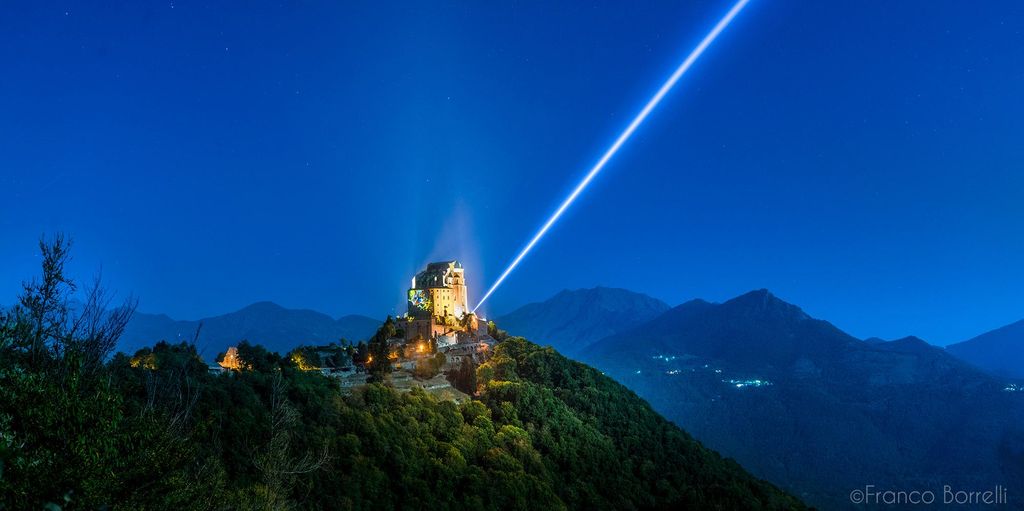 Un unico raggio luminoso, con inclinazione fissa di 47 gradi e puntato verso est, ove sorge il sole, ove guarda il finestrone absidale della Sacra di San Michele. Un messaggio di speranza, ma anche di unione tra terra e cielo, tra i popoli che mai come ora appaiono nuovamente divisi, come se non avessimo ancora imparato che siamo tutti abitanti della stessa casa, il pianeta Terra..