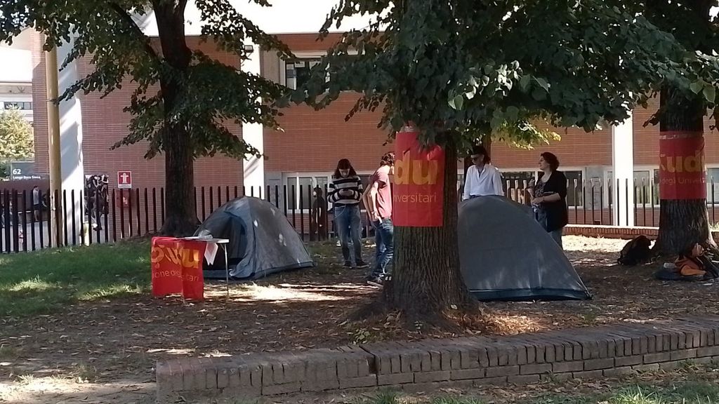 Da questa mattina i giovani sono tornati nelle tende, vicino al Campus Einaudi, per protestare contro i costi della vita per gli studenti in trasferta, a cominciare dagli affitti. Appartengono a sigle come Udu e Cambiare rotta. "Siamo una decina, a turnazione, visto che tra esami e corsi ci sono gia impegni e orari da rispettare - racconta Lorena, 23 anni, di Udu - Dal 25 al 28 rimarremo qui, dormendo anche di notte".