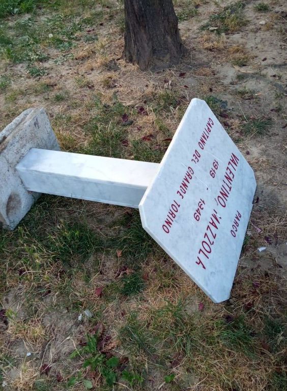 Il basamento in cemento coperto per evitare di inciamparsi dentro. È tutto ciò che resta da due mesi della targa di intitolazione a Valentino Mazzola dei giardini di piazza Galimberti dopo l’atto vandalico avvenuto a metà luglio.