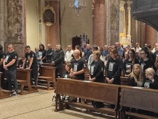 Strage di Brandizzo: folla, palloncini e la maglia della Juve a Chivasso per il funerale di Giuseppe Aversa [FOTO e VIDEO]