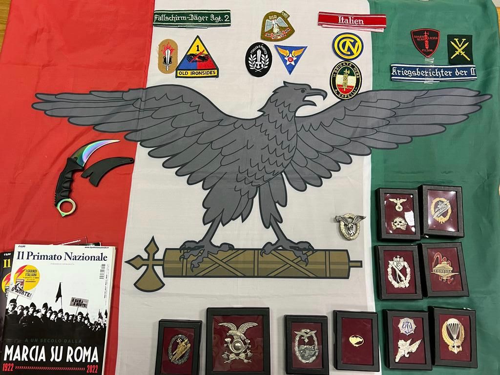Nel corso delle perquisizioni è stato sequestrato diverso materiale con simbologie fasciste e naziste