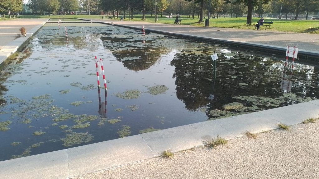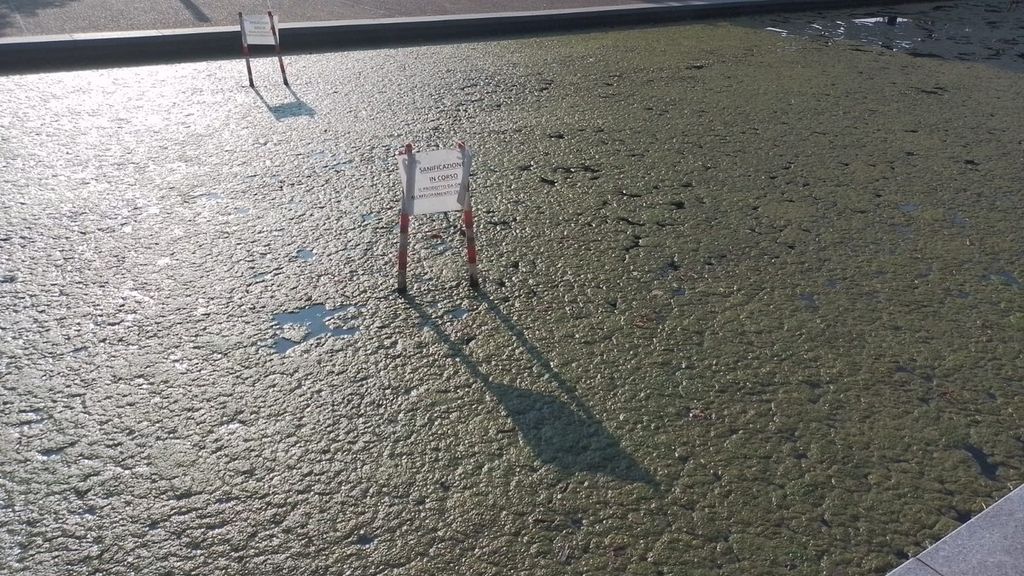 C'è un foglio di carta che spiega come la sanificazione sia in corso e di come il prodotto utilizzato dia origine (senza accenti, ma pazienza) all'affioramento delle piante. Di certo, però, il risultato al momento è scoraggiante. E lo hanno notato le tante persone che anche questa domenica affollano il polmone verde tra Santa Rita e Borgo Filadelfia. Acqua stagnante, piante verdi in superficie, insetti. In alcuni casi la presenza di "alghe" è talmente densa da occupare l'intero specchio d'acqua: soprattutto nella fontana di mezzo. Va un po' meglio nelle altre due, anche se è un meglio relativo.