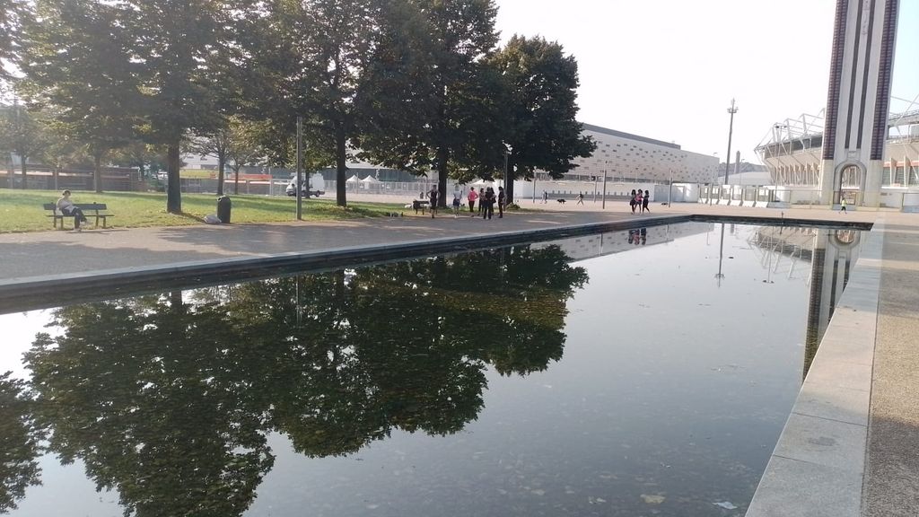 Cartelli di "lavori in corso": qualcosa si muove (pare) nelle fontane a raso di Piazza d'Armi, ma l'effetto - in questo autunno ancora travestito da estate - è ancora davvero pessimo. I tre specchi d'acqua, infatti, continuano a essere una raccolta di piante acquatiche e di insetti, mentre della fontana e dell'acqua trasparente hanno ben poco. Un vero peccato, a poche settimane dal ritorno delle Atp Finals proprio al PalaOlimpico. Come testimoniano anche i campetti da ping pong che nella mattinata di oggi hanno colorato il tratto che una volta era il prolungamento di corso Sebastopoli, davanti allo stadio.