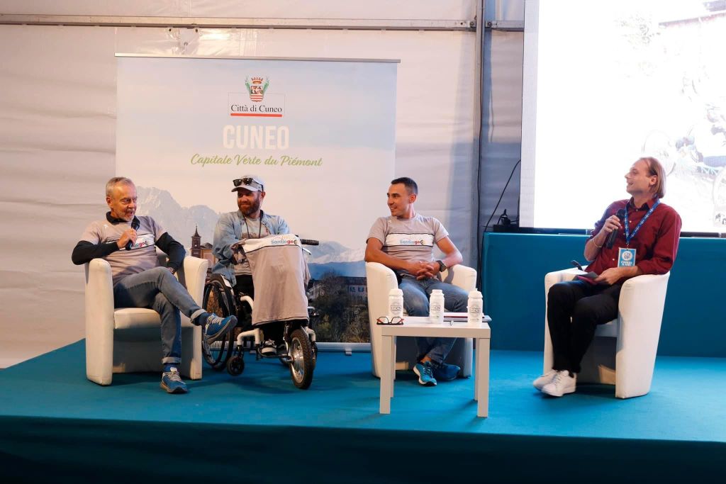 Determinazione, professionalità, solidarietà e inclusione. Questi sono i principi che animano il trio di ciclisti cuneesi, composto da Claudio Garelli, Davide Rivero e Luca Cucchietti, che lunedì 2 ottobre è partito, pedalando insieme, per percorrere circa 800 Km con 15.000m di dislivello lungo il percorso francese del Cammino di Santiago, in maniera ecologica e sostenibile: handbike per Luca Cucchietti e gravel per Claudio Garelli e Davide Rivero. La finalità è quella di raccogliere i circa 10.000 euro necessari all’acquisto di una bicicletta a pedalata assistita ad uso di anziani, disabili, ipovedenti e che, grazie al Comune di Cuneo, sarà a disposizione della collettività.