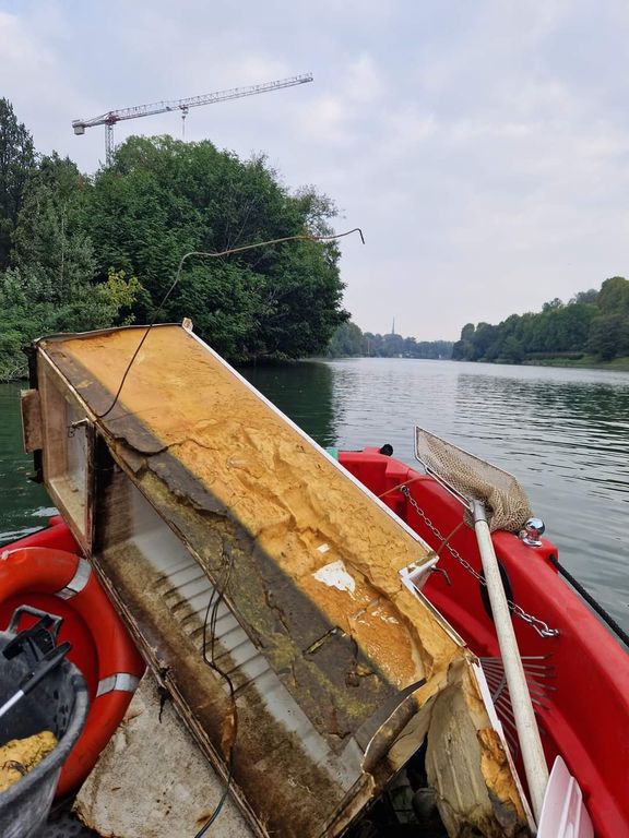 Un tuffo nella maleducazione: gli operatori dell'Amiat ripescano un frigorifero nel Po [FOTO]