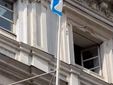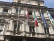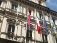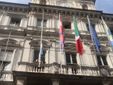 La bandiera di Israele sventola sulla facciata del Comune di Torino, accanto a quella del Piemonte, dell'Italia, Unione Europea e Città di Torino. Ad issare il vessillo dal balcone centrale il capogruppo di +Europa&Radicali Silvio Viale, insieme al numero 1 di Fratelli d’Italia a Palazzo Civico Giovanni Crosetto.
