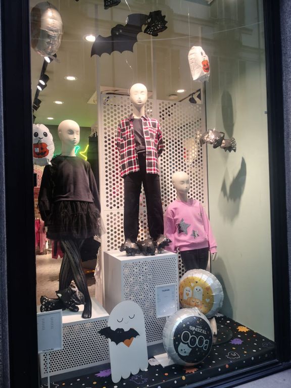 Attraversando il colonnato, "Candy Lisa" ha messo in mostra ogni tipo di dolcetto a tema: dai fantasmini gommosi, al vampiro nella bara accompagnato da altri mostri di zucchero. L'intimo di Tezenis per bambini ha invece deciso di puntare su pipistrelli volanti, palloncini con zucche e fantasmi. Tutti pronti ad accogliere i bambini che - travestiti da fantasmi e mostri - andranno a chiedere "dolcetto o scherzetto".