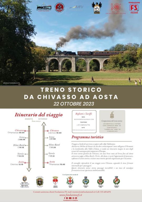 Attraverso i 100 km di binari che da oltre 150 anni collegano Chivasso ad Aosta, si è snodato un itinerario affascinante contornato da scenari di montagna tra i più suggestivi d’Europa.