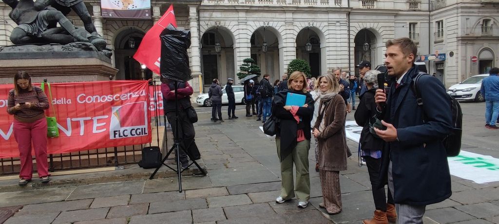 La protesta coordinata da FLC Cgil Piemonte per chiedere l'intervento del Governo. In piazza anche le istituzioni torinesi che hanno presentato mozioni a sostegno dell'istituto