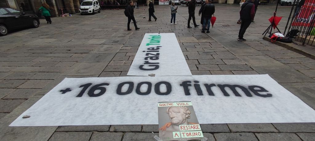 In presidio sotto il Comune per il Goethe Institut. Lo Russo: "Non dipende da noi, ma faremo tutto il possibile"