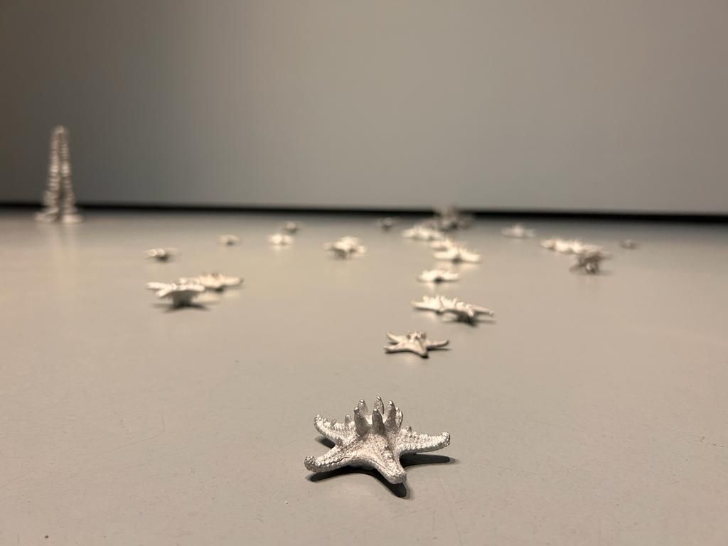 Cinque nuove opere sono state prodotte per l’occasione, tra queste una foglia di marmo nero, intitolata Quando nessuno mi vede, collocata nel giardino del museo, all’ombra di un cespuglio. All’interno le fa eco una scultura di marmo verde, speculare alla prima, intitolata Alla luce del sole. Le altre opere, si rispondono l’un l’altra nel percorso, tracciando relazioni e rispecchiamenti.