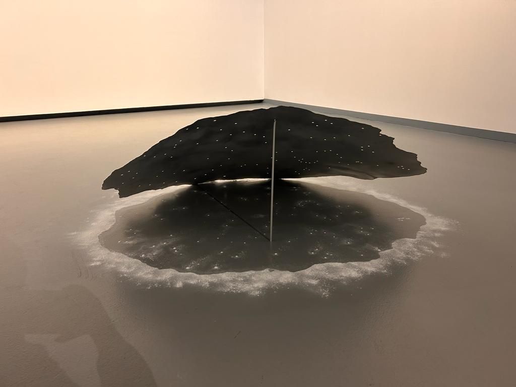 I visitatori troveranno tra le opere un panno posato a terra, una coperta nera ricamata di stelle bianche, disposte in un preciso ordine. Il loro disegno ripeterà la posizione delle costellazioni sopra Torino il 31 ottobre alle sei della sera, giorno e orario di inizio dell’inaugurazione. Si troveranno così inclusi in un perfetto rispecchiamento tra il microcosmo del ricamo e il cielo sopra il museo.