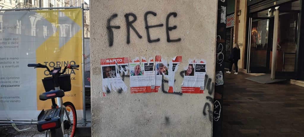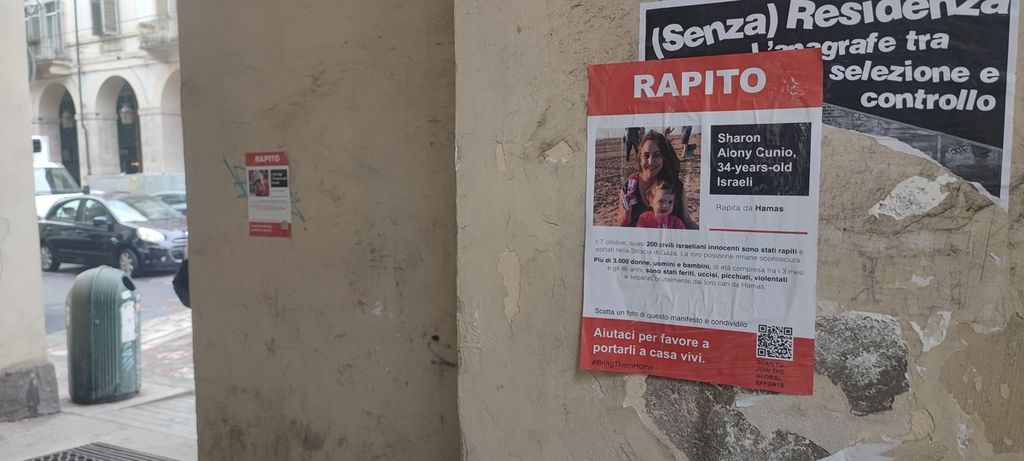 In via Po alcuni volantini sono affissi sopra ad altri o cercano di coprire le scritte sui muri. Ai manifesti che chiedono il rilascio degli ostaggi di Hamas si sono aggiunti quelli che mettono in luce ciò che avviene a Gaza