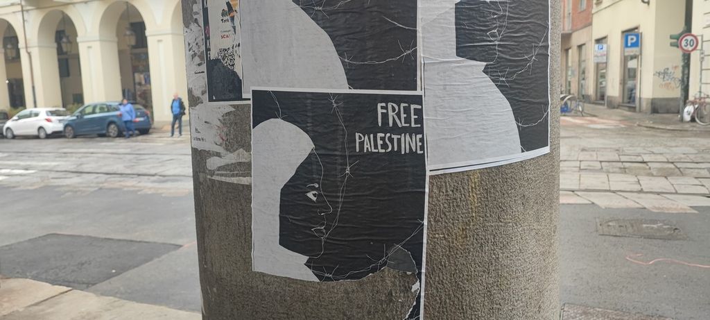 La 'guerra dei manifesti' sui muri di Torino: chi sta con Israele e chi denuncia l'attacco a Gaza