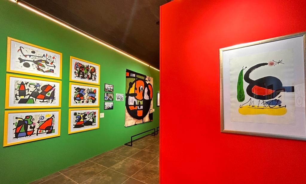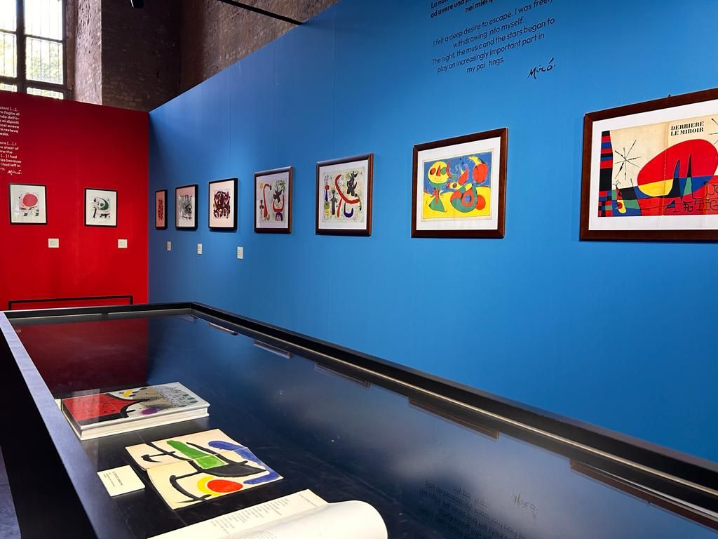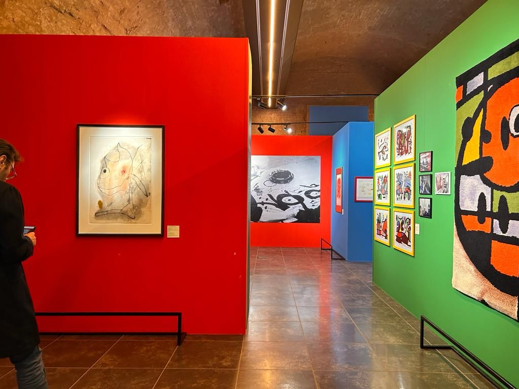 Il percorso si sviluppa su diverse sezioni a partire dalle fotografie di Man Ray, suo compagno di strada all’interno degli artisti surrealisti di Breton, fino alle litografie, alle ceramiche, alle opere grafiche e infine ai manifesti che raccontano il lavoro esplosivo dell’artista Catalano. Colori e segni che trasmettono la tranquillità e la pacatezza dello spirito, tipico dell’infanzia.