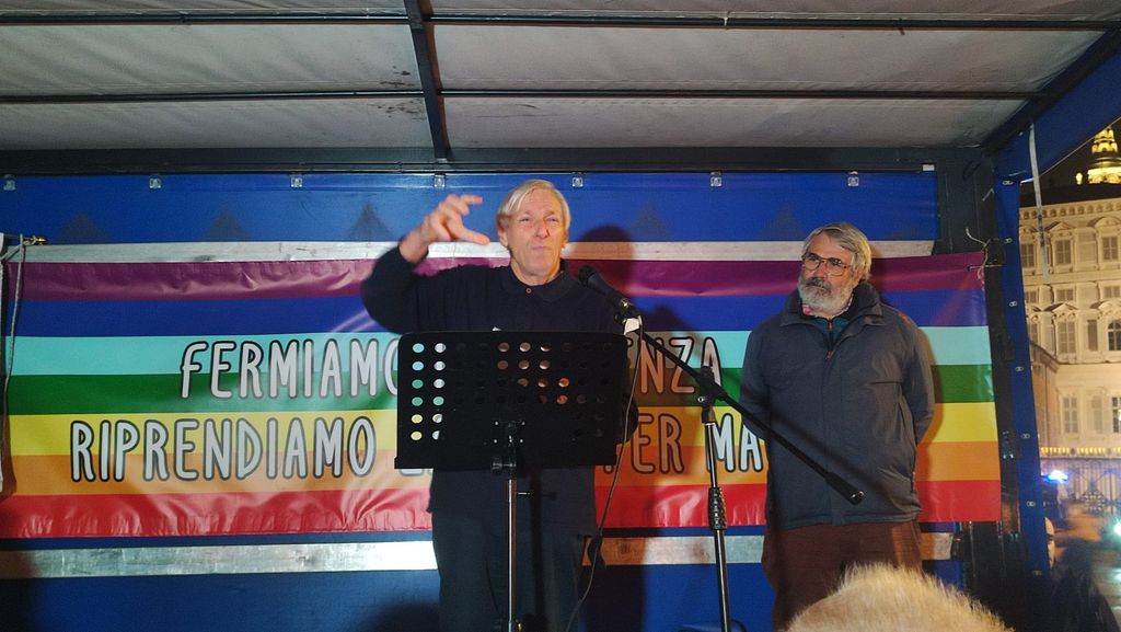Il fondatore del Gruppo Abele cita Gandhi per affermare l'assoluta necessità di fermare un conflitto che in pochi giorni ha scosso tutto il mondo. Migliaia i partecipanti