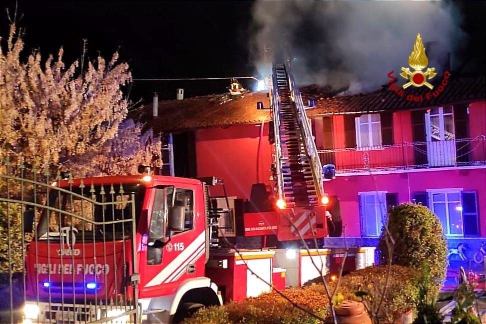 In fiamme il tetto di un edificio a Brusasco: i vigili del fuoco salvano il resto della casa