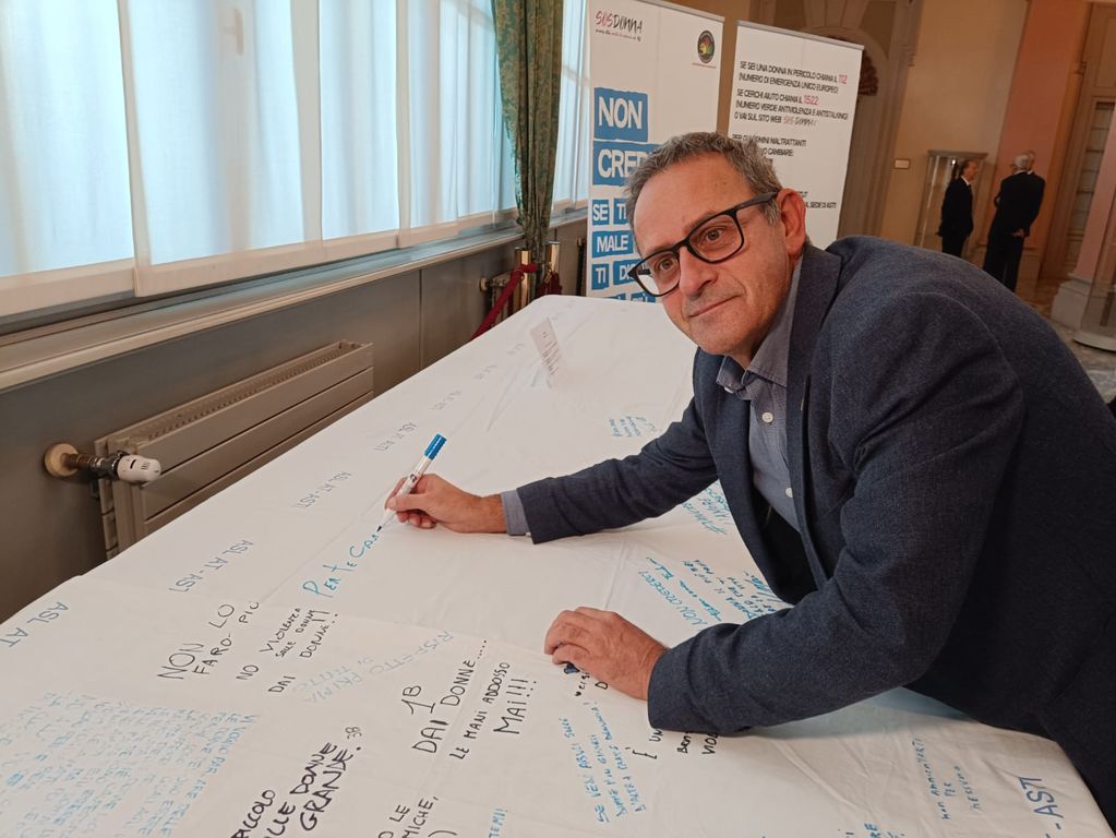 Questa mattina l'esposizione ha fatto tappa a Palazzo Lascaris, dove tutti i consiglieri regionali hanno firmato le lenzuola dell'ospedale Cardinal Massaia di Asti, da dove è partito il progetto. Un'iniziativa alla vigilia della giornata contro la violenza sulle donne, del 25 novembre. Il 64% delle donne che subisce violenza non ne parla; nel 63% dei casi lo stupro viene commesso dal proprio partner e soltanto il 5% delle vittime fa denuncia in tribunale.