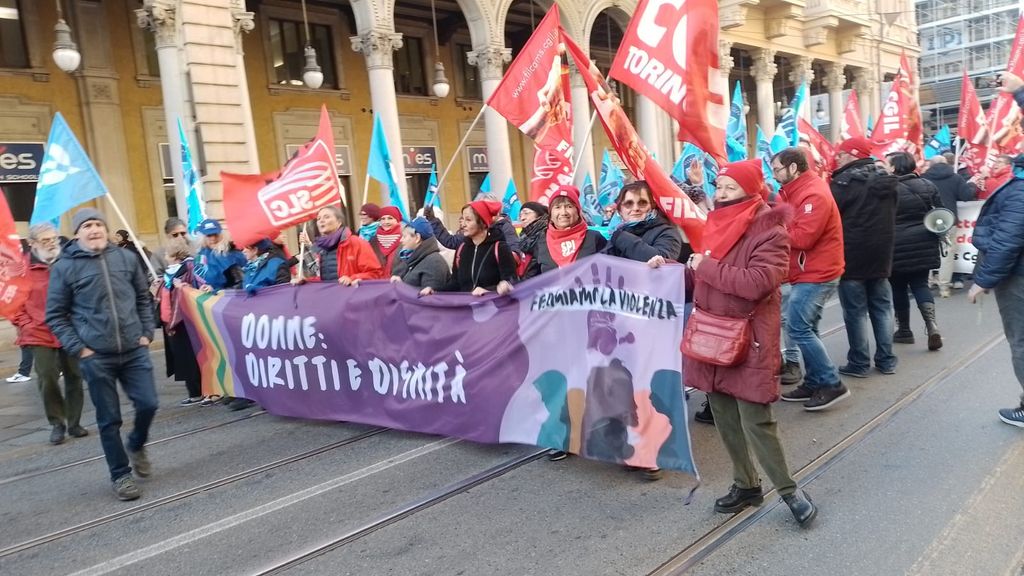 In partenza da Porta Susa il corteo di Cgil e Uil per protestare contro la legge di Bilancio e il Governo Meloni. Il ritrovo, fissato alle 9 nella piazza davanti alla vecchia stazione, ha visto i manifestanti schierarsi fino all'incrocio di corso Vinzaglio.