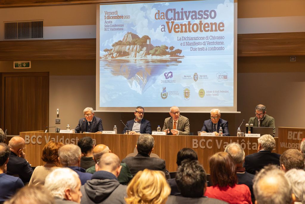 Lo scorso fine settimana, il sindaco Claudio Castello era intervenuto al convegno dal titolo “La Dichiarazione di Chivasso e il Manifesto di Ventotene: due testi a confronto”, promosso ad Aosta dalla Regione Autonoma Valle d’Aosta e dalla Fondation Emile Chanoux nell’ambito dell’80° anniversario della Resistenza, della Liberazione e dell’Autonomia, istituito con la legge regionale 14/2023 approvata dal Consiglio Valle nello scorso mese di agosto. Il vice sindaco di Chivasso Pasquale Centin era presente invece, a Valsavarenche, alla conferenza “Ripartire da Chivasso - Territori e comunità alla prova delle sfide dell’oggi”.