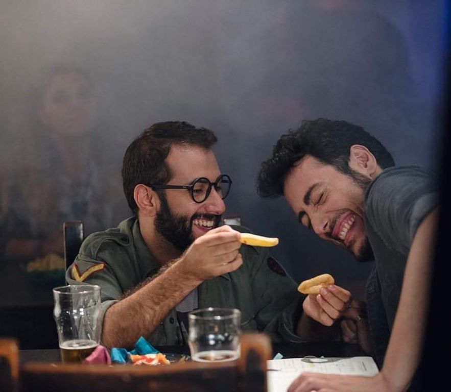 Due attori che ridono insieme