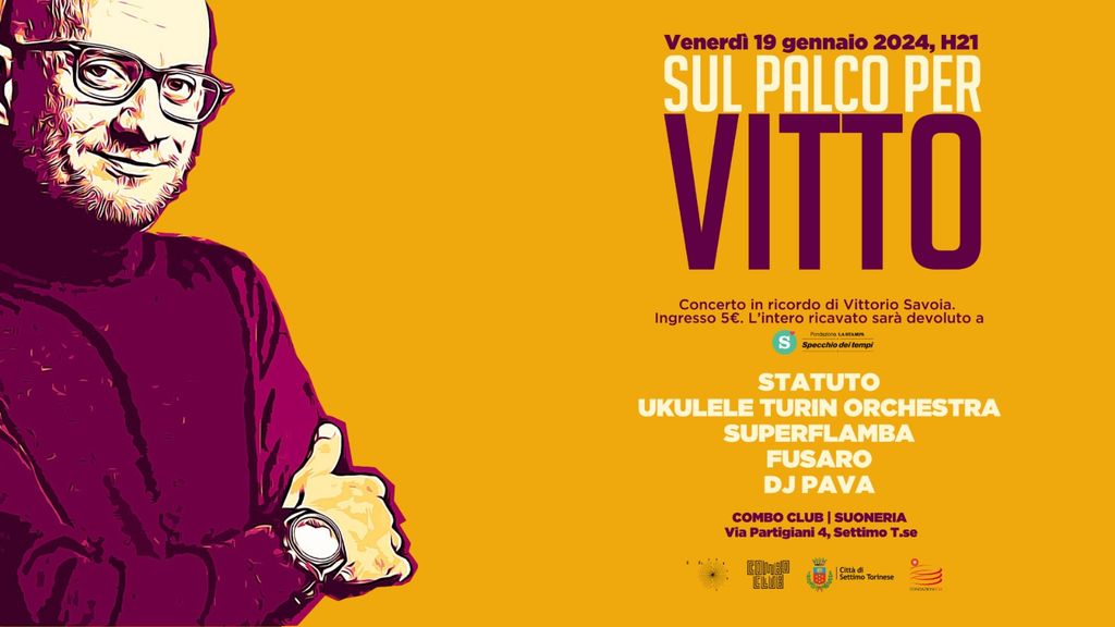 Un concerto in memoria del giornalista e fotoreporter di Settimo Torinese, Vittorio Savoia, scomparso prematuramente il 18 ottobre 2023 a 36 anni.