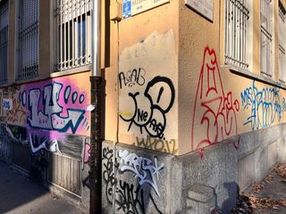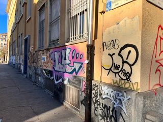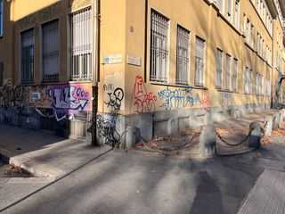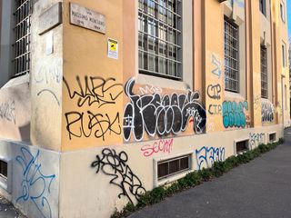 Le scritte No Vax campeggiano ancora sui muri dell'Isef di piazza Bernini: chi deve rimuoverle?
