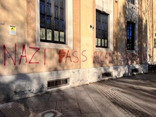Un anno fa, una enorme scritta in rosso "Vaccino uguale morte" e altre erano comparse di notte lungo le pareti esterne del liceo Cavour, del Berti e dell'Isef: solo queste ultime non sono state cancellate