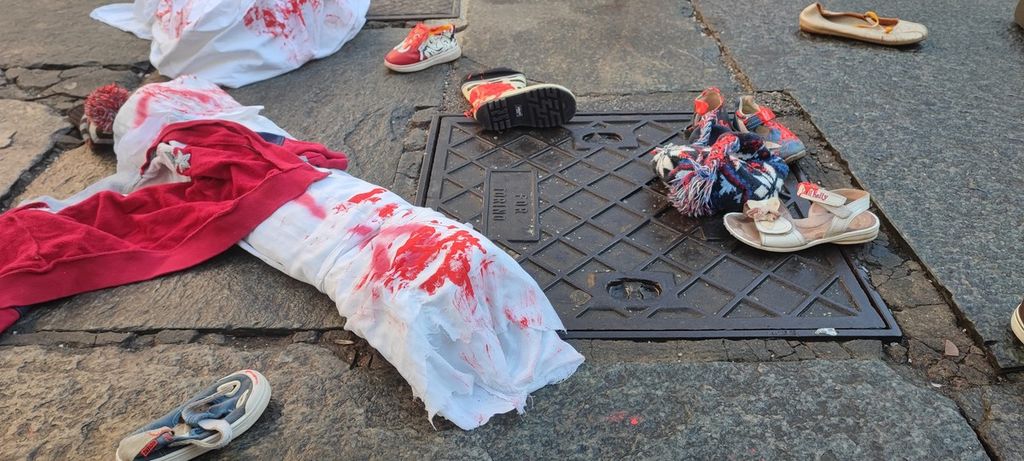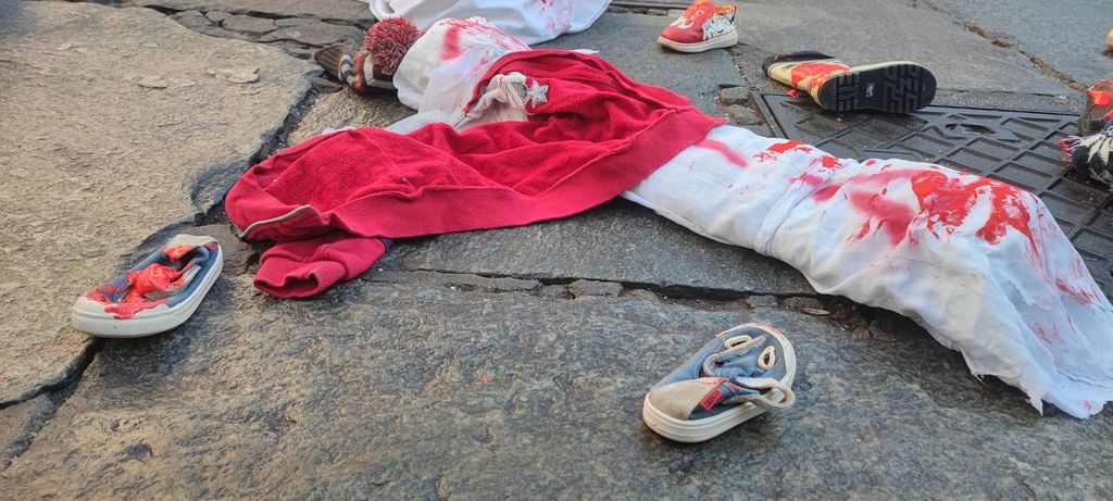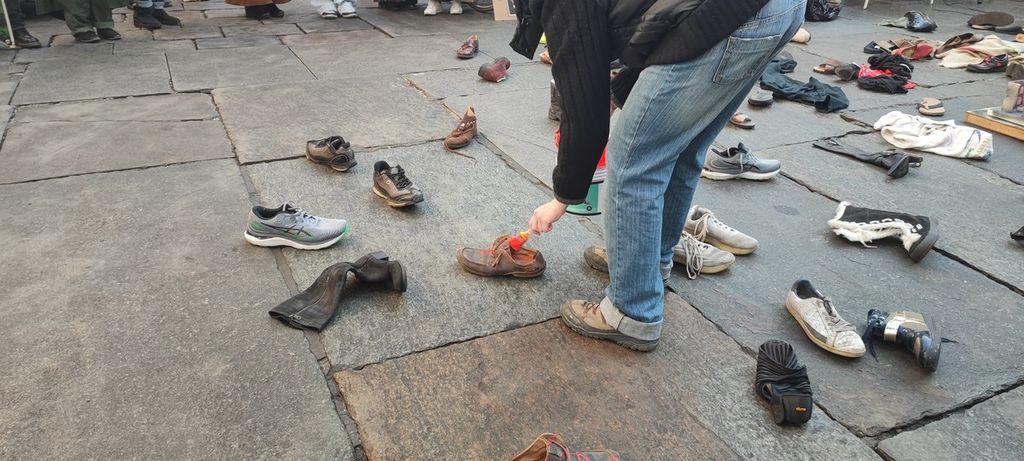 Centinaia di scarpe insanguinate per la Palestina: di fronte al Comune il presidio di "Torino per Gaza" [VIDEO]