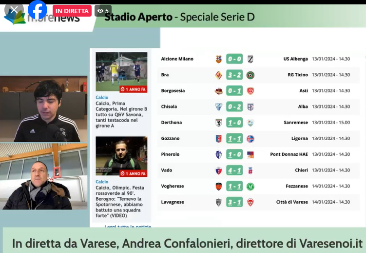 Nuova puntata della rubrica 'Stadio Aperto' in onda sui quotidiani online del Gruppo Morenews e in diretta ogni lunedì alle ore 21 e che tratta sulla giornata appena trascorsa del campionato di Serie D targato Girone A.