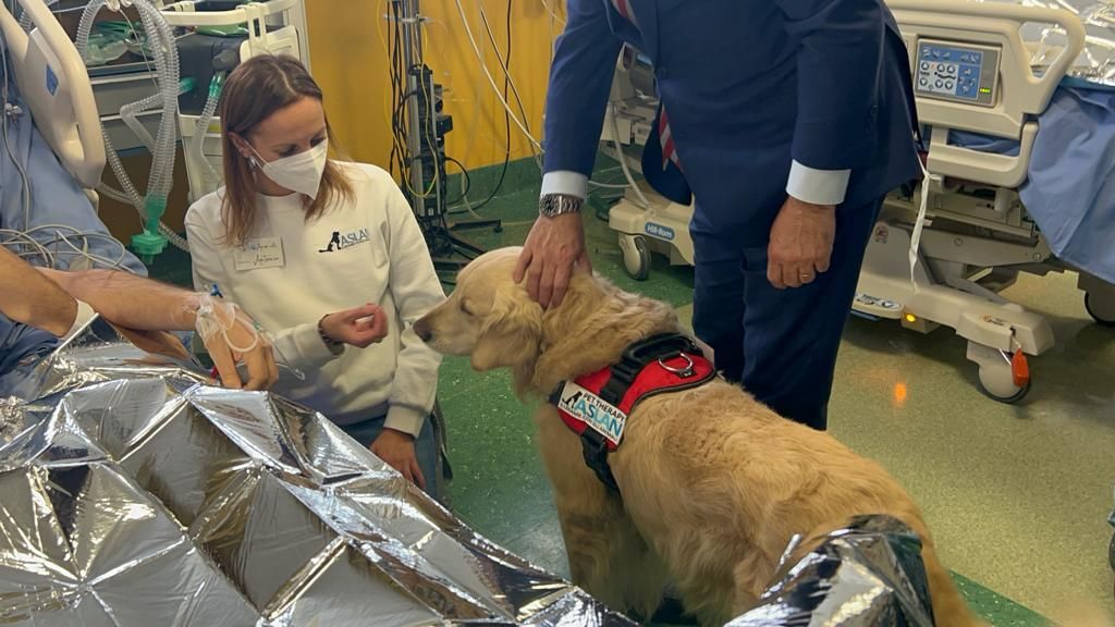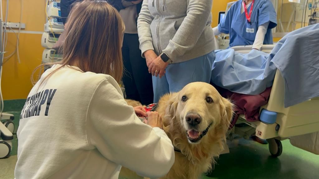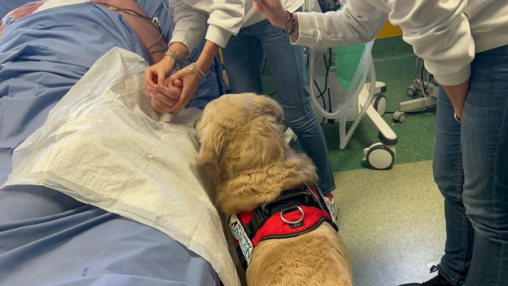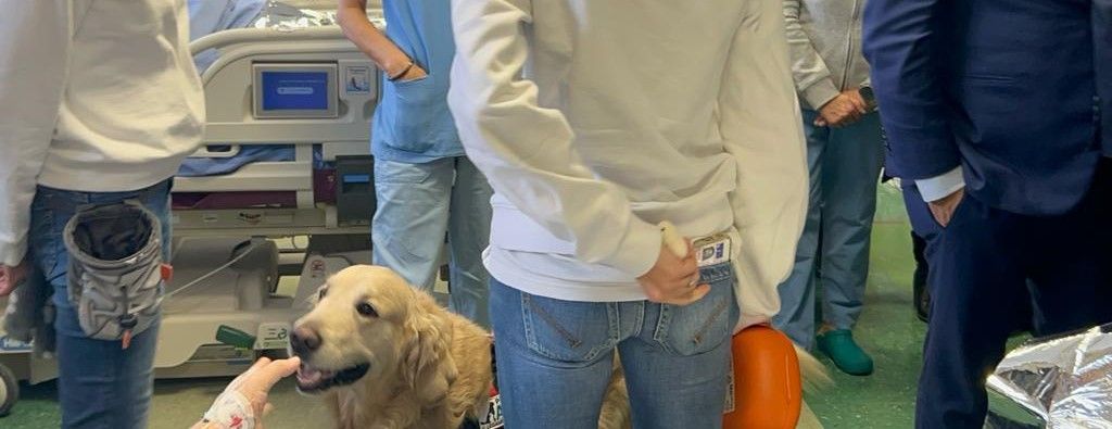 Sono emozionati i pazienti di terapia intensiva e rianimazione che oggi hanno ricevuto la visita di Noah e Cecilia, i due Golden Retriever addestrati per la pet therapy dall’associazione Aslan.