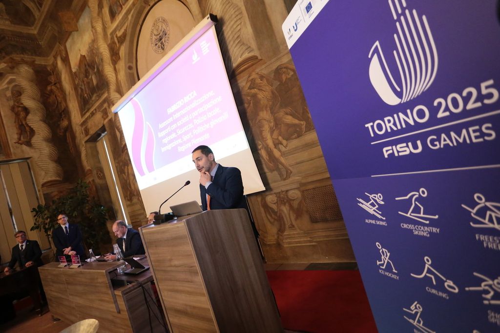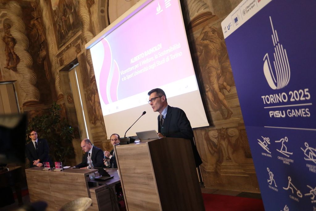 Ai saluti del Rettore del Politecnico di Torino Guido Saracco sono seguiti gli interventi di Alberto Rainoldi, vicerettore per il Welfare la sostenibilità e lo Sport dell’Università degli studi di Torino, Leonz Eder, presidente Fisu, l'Assessore regionale allo Sport Fabrizio Ricca, Riccardo D’Elicio, presidente Cus Torino, Alessandro Ciro Sciretti, presidente del Comitato Organizzatore Torino 2025.