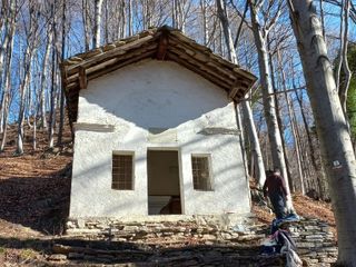 Dopo un piccolo ristoro con bevande calde a metà percorso preparato dai membri dell'associazione, sceso oramai il buio, il gruppo ha intrapreso il ripido sentiero che attraverso il bosco di faggi raggiunge il piccolo agglomerato di case in pietra ormai abbandonato del Biolaj e poco distante la piccola Cappella, illuminata per l’occasione e per la prima volta nella sua storia da fari alimentati da pannelli solari.