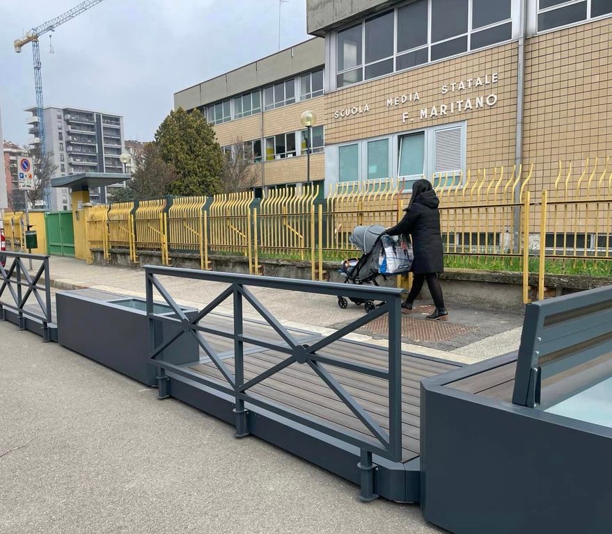 Davanti alla scuola media Maritano di via Marsigli 25 arriva il primo “parklet” di Torino.  Di fronte all’istituto di Pozzo Strada sono infatti state installate delle pedane di legno, che consentono di ampliare il marciapiede e creare di fatto un’area pedonale con panchine: presto la struttura verrà abbellita anche con fiori e piantine.
