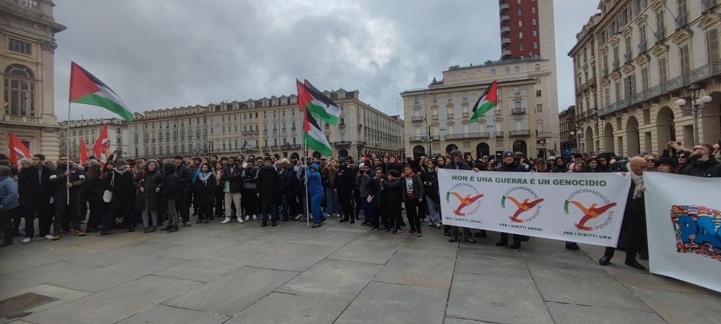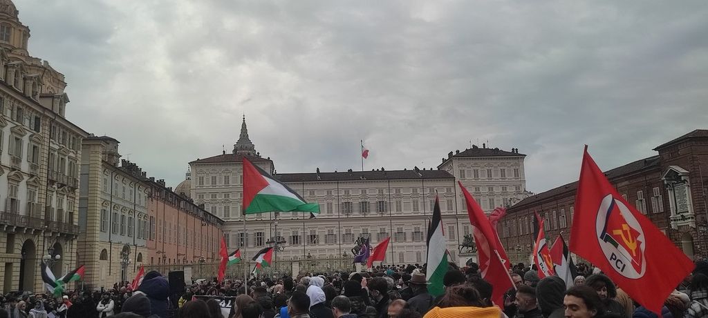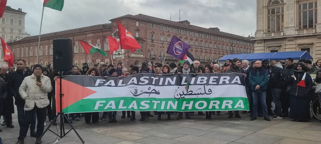 Ancora una manifestazione a Torino contro la guerra a Gaza. Questo sabato il ritrovo è stato in piazza Castello alle 16, dove centinaia di persone si sono trovate per chiedere lo stop del conflitto in Medio Oriente e la liberazione della Palestina.