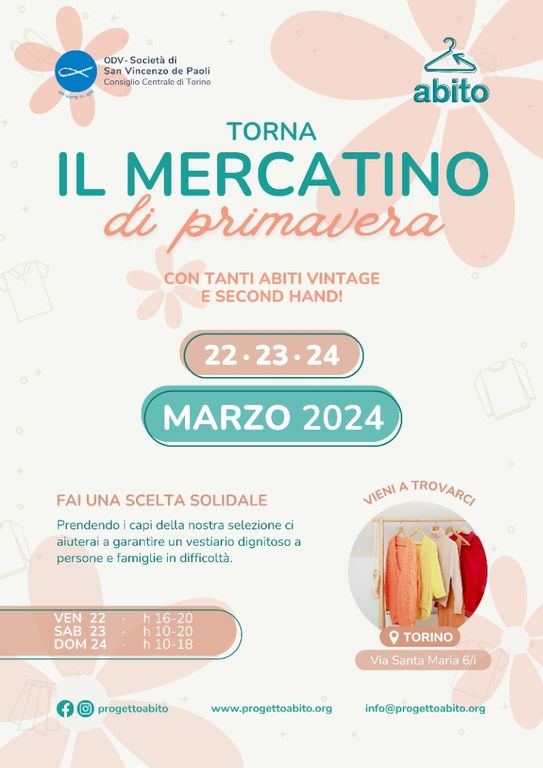 Abito è un progetto di donazione di vestiti e attività di inclusione sociale realizzato dalla ODV Società di San Vincenzo de Paoli - Consiglio Centrale di Torino per contrastare la povertà e favorire l’integrazione.