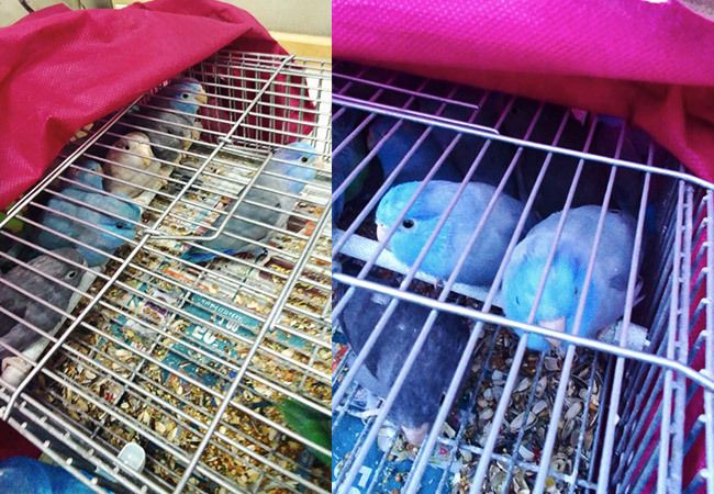 Dentro minuscoli trasportini, privi di acqua, per i piccoli volatili la traversata di 50 ore in nave dal Porto di Genova sarebbe stata fatale